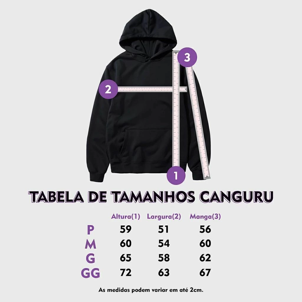 > Capuz sem cordão > Bolsos frontais > Costuras reforçadas > Composição: 50% algodão e 50% poliéster > Tecido: Moletom 2 cabos > Indústria Brasileira